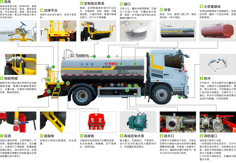● 采用專用定制版大功率水泵,具有性能優(yōu)良、工作可靠、效率高、流量大、等特點,前沖可達(dá)雙向8車道,后灑可達(dá)雙向4車道,高炮最大可達(dá)40米射程。